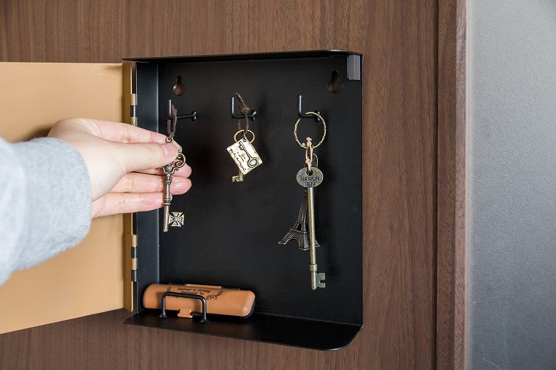 キーボックス リモコンキーや印鑑も収納できるスタイリッシュな木目柄キーボックス おしゃれ 壁掛け kb-1000m