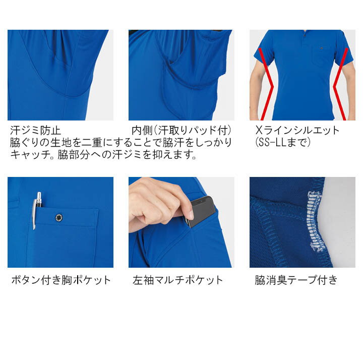 脇消臭テープ、汗取りパッド付き ■素材 軽量ストレッチフルダル鹿の子 ポリエステル100%関連アイテムはこちら 長袖ポロシャツ 半袖ポロシャツ
